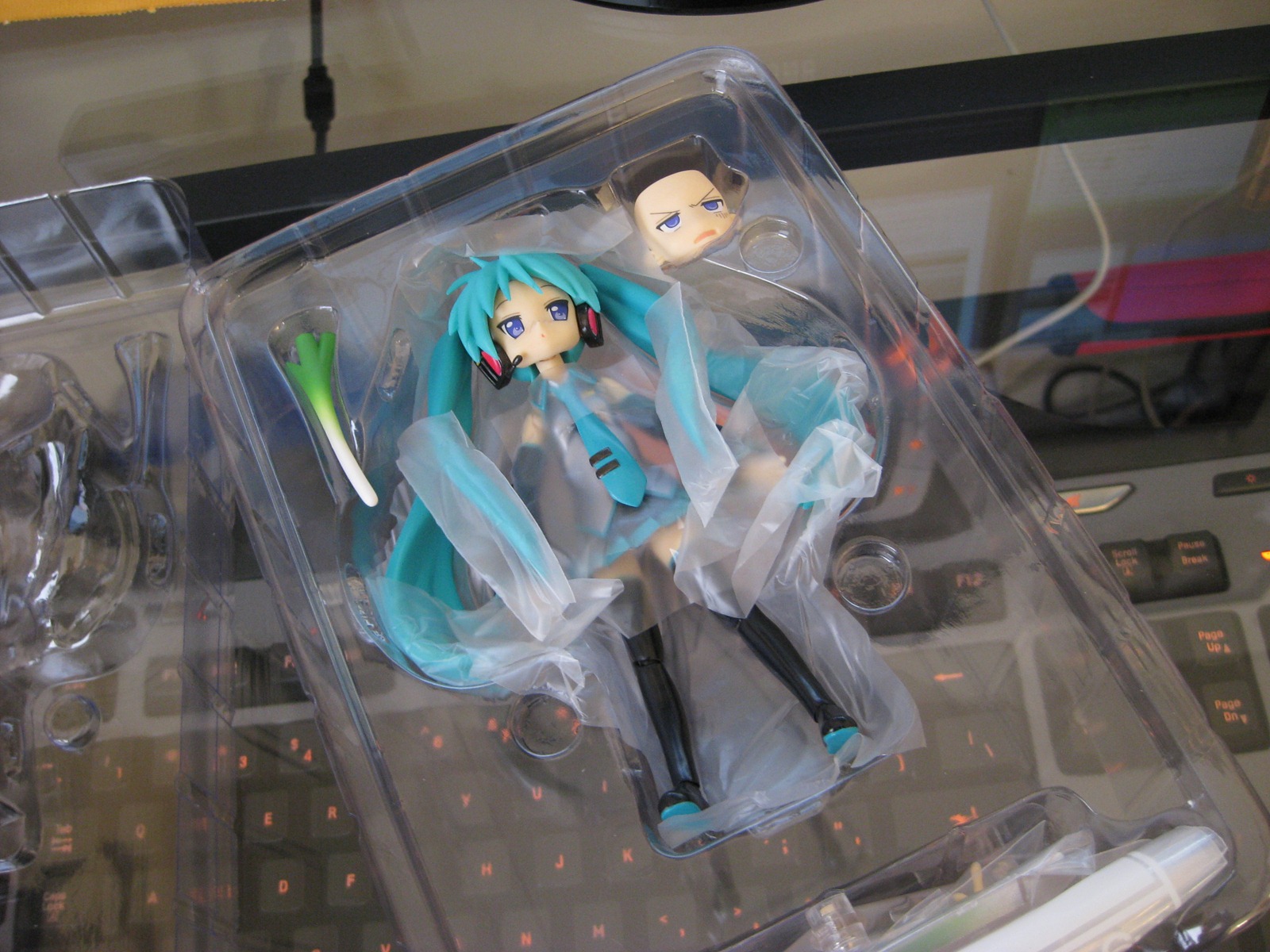 This particular Kagami figma is the cosplay version, modeled after her appearance in the Lucky Star OVA. She was coerced into going to Comiket with Konata and convinced to dress up as Hatsune Miku. Out of the box, she’s a pretty standard figma…
