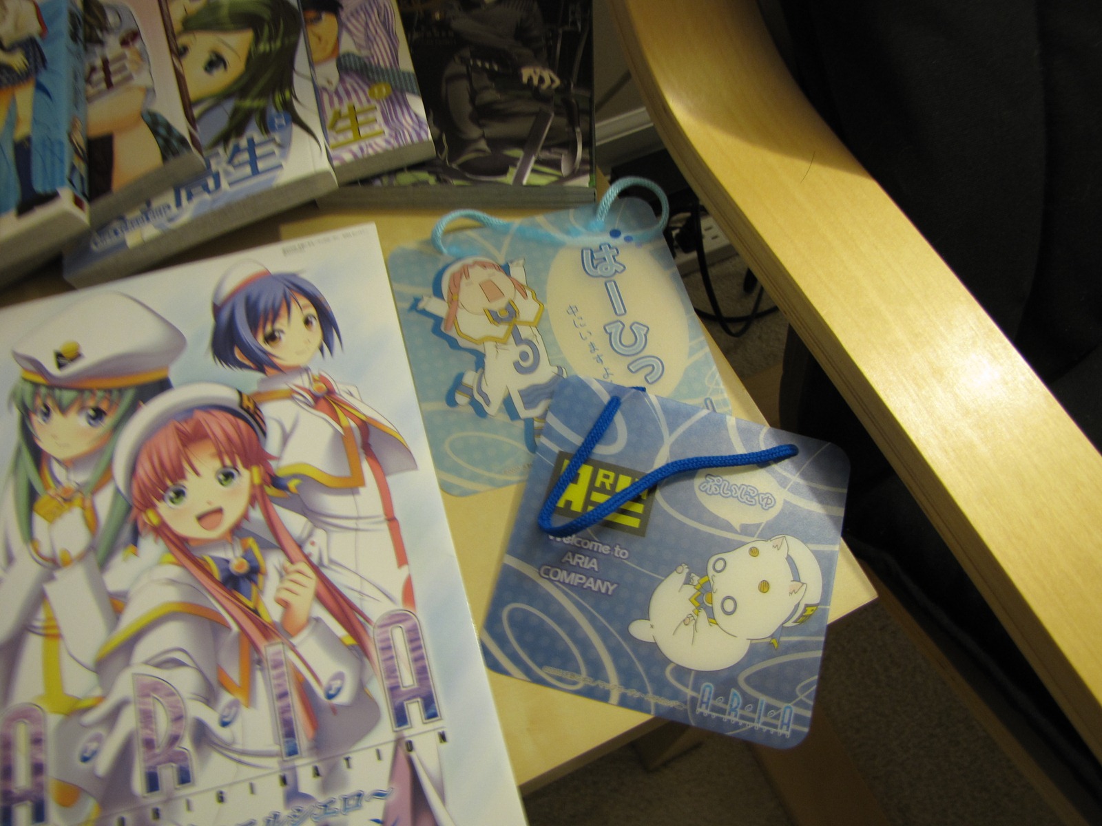 From left to right: ARIA door hangers, ARIA the Origination artbook, Tales of Vesperia promotional guide and Lucky Star punch-out bookmarks. The above items actually came from a friend that lives in San Francisco. He happens to go by Kikokuniya and Japantown quite frequently and he finds a lot of nifty little items.