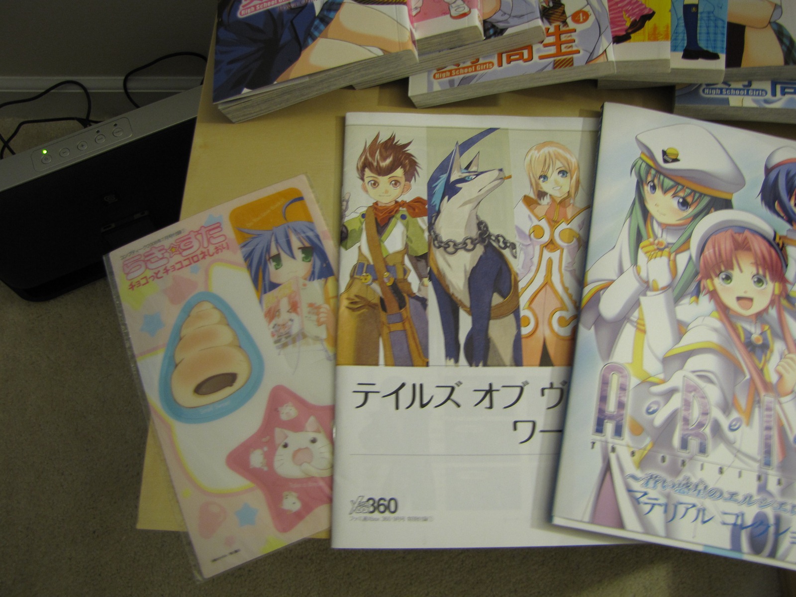 Today’s arrivals: High School Girls vol. 1-9, Tsukihime vol. 6, Nendoroid Yoko, ARIA artbook, ARIA door hangers, Tales of Vesperia promotional literature, and Lucky Star bookmarks.