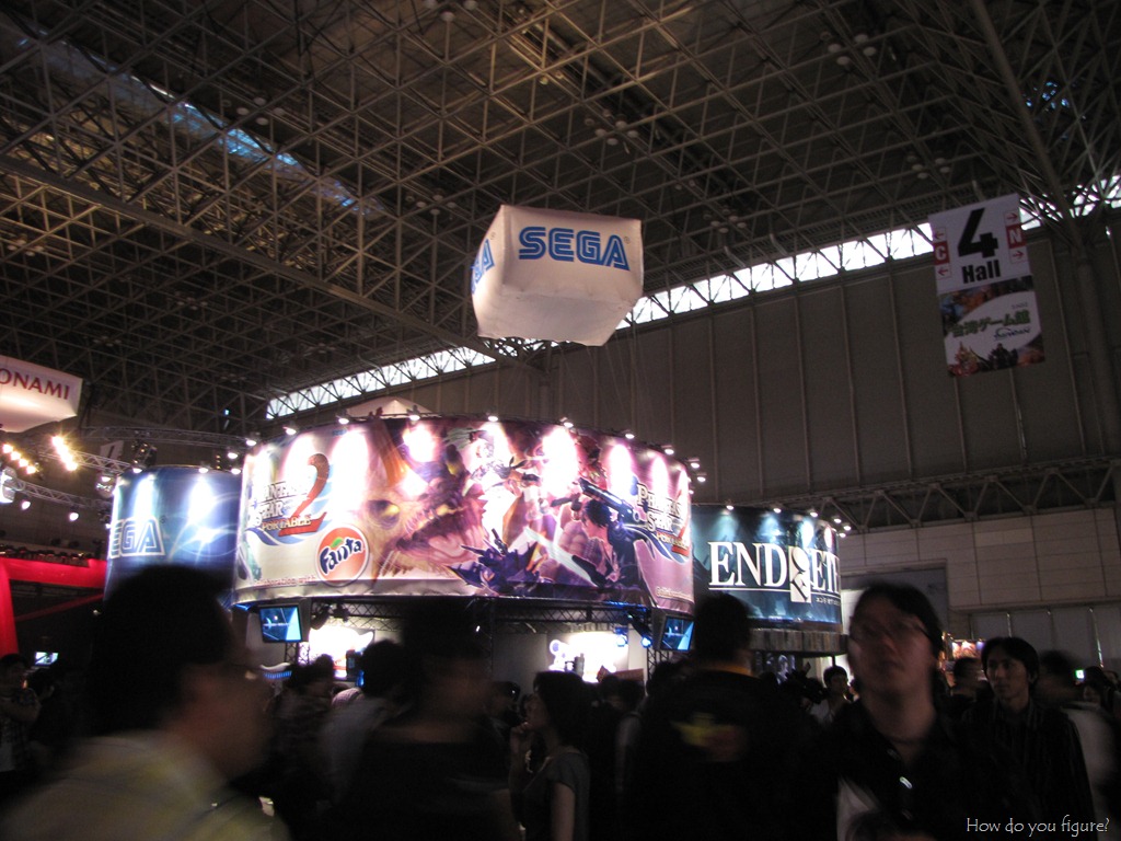 Once inside, we were inundated with lights, sounds, and waves of people. It was a bit of an overload at first, though I quickly got used to it. With the atmosphere, it was pretty easy to get lost and we constantly had to make sure we didn’t get separated from each other. Many of the major publishers had large booths, including Ubisoft, Sony, Square Enix, Capcom, Namco Bandai, Konami, Sega, and Microsoft. We spent a bunch of time wading through the crowds and visiting each one, picking up as many handouts and taking as many pictures as we could.