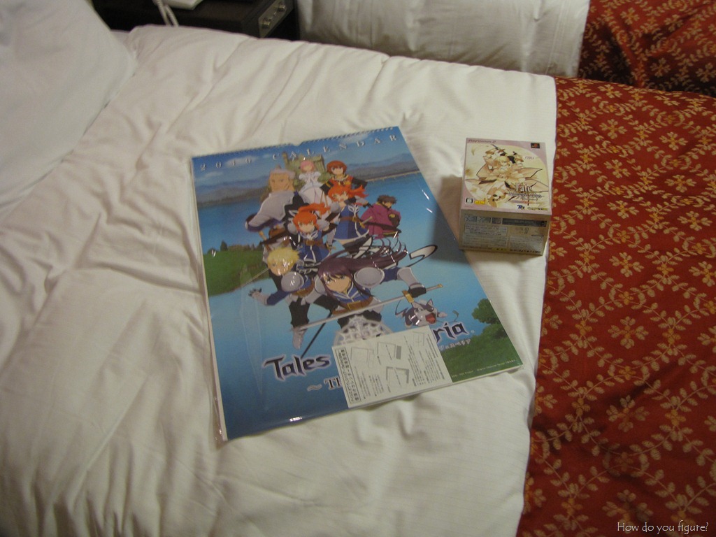 It was then off to the vendor area. While small, there was plenty to look at. Square Enix had a rather large display with “limited” items. Unfortunately, there was such a huge line that I didn’t get the chance to actually see them up close. I did managed to find a rather impressive wall calendar for Tales of Vesperia ~The First Strike~. For 2200 Yen, I picked it up to hang at home.
