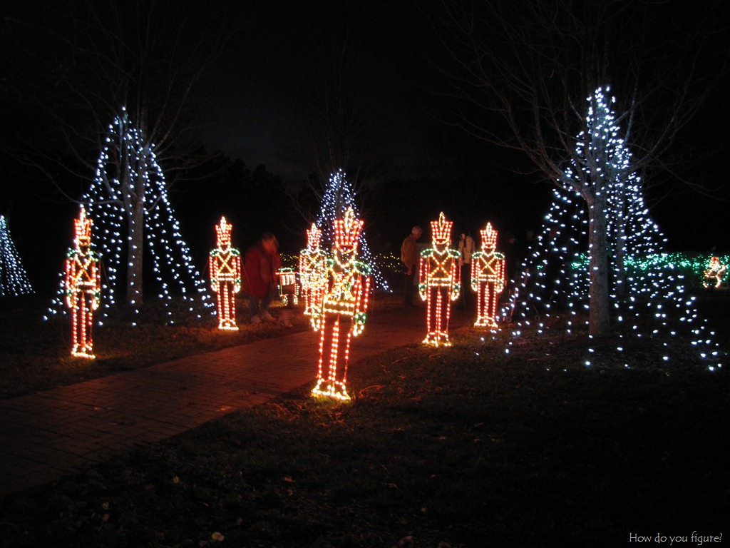 Merry Christmas from Charlotte, North Carolina! Sadly, no snow here today, only rain. As with last year, some coworkers and I went to the Daniel Stowe Botanical garden to see the holiday light displays. I keep saying that I’ll bring a tripod or something with me to steady the camera, but alas, I forgot. It’s a step forward from last year, however, when I forgot the camera all together…. >.<