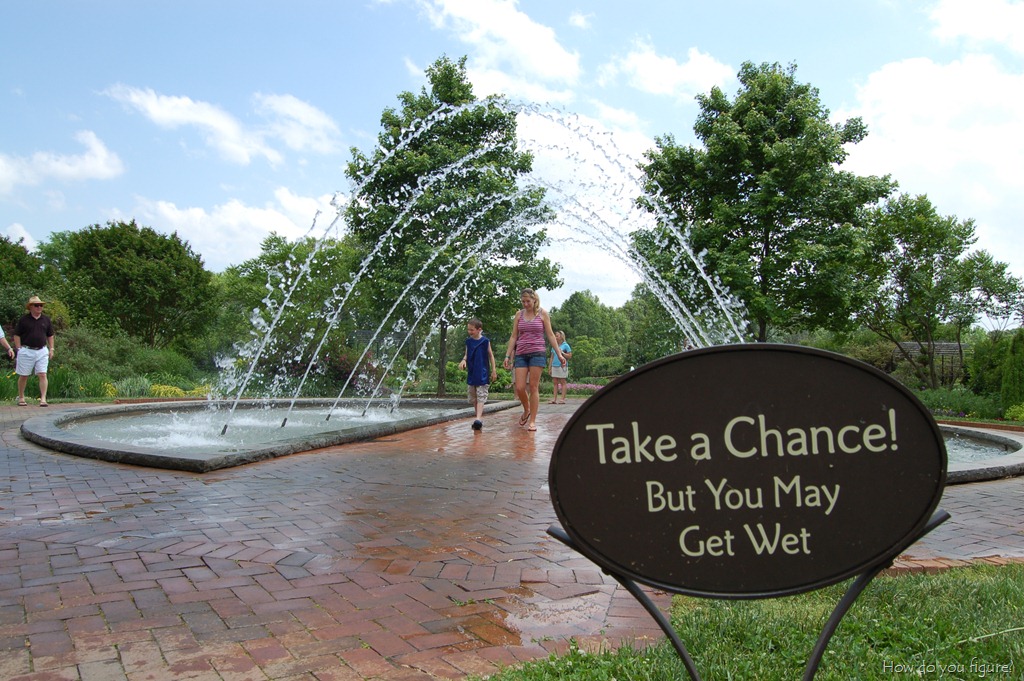 One of the best features of the main garden is this fountain. The spray of the jets is somewhat unpredictable and occasionally turns off. Unsuspecting folks sometimes get caught underneath…