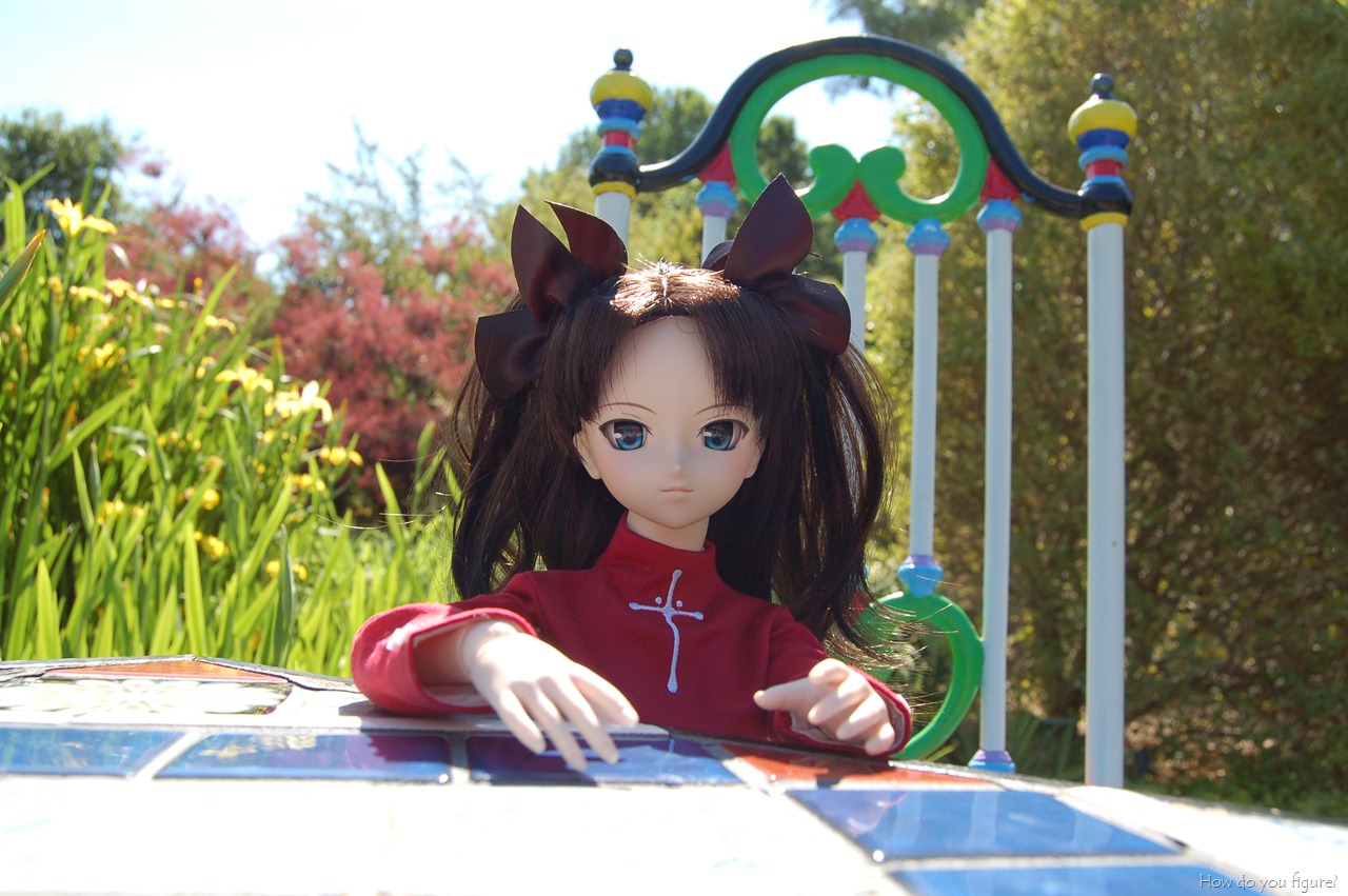 After the first few shots, I pretty much forgot that I’d feel embarrassed carrying a Dollfie around in a public place. The key here was to have some camera equipment and be in an environment where people are bound to take scenic pictures. I did get the occasional odd look, though a few people actually asked me what I was doing. In addition to working for a doll company, I was also associated with a student taking photos for a class, creating material for a book, and shooting for a magazine. I replied to a curious onlooker that it was easier than taking pictures of children. ^.^
