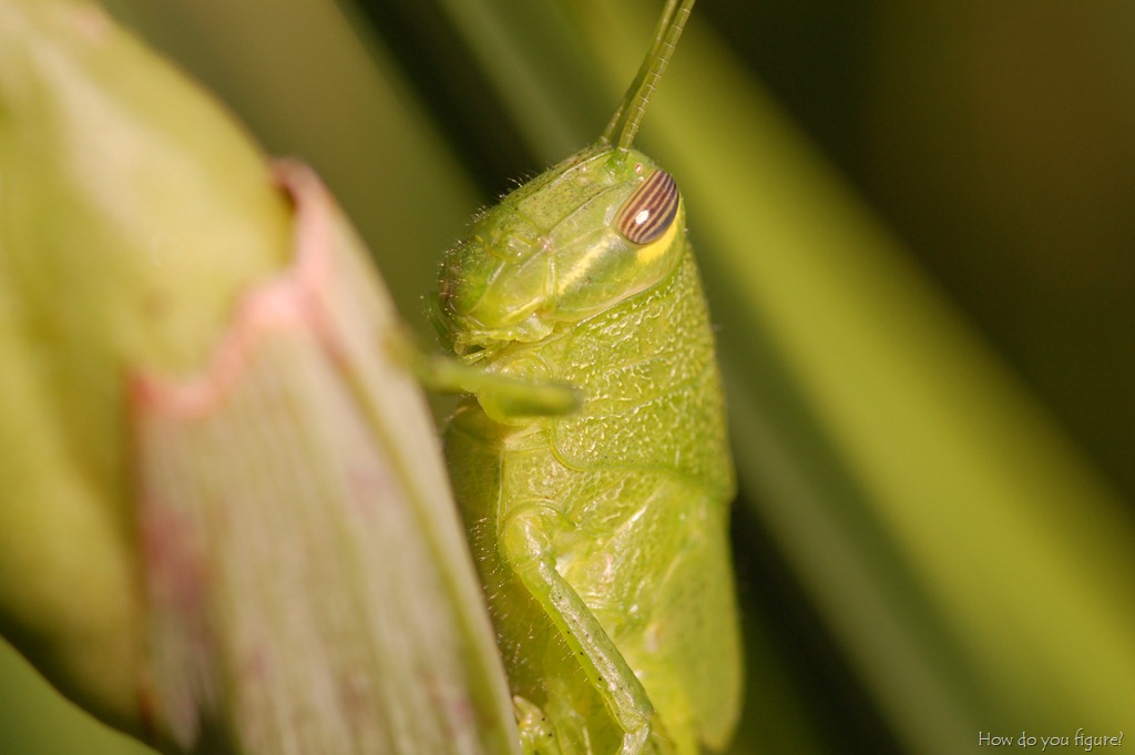 Finding this grasshopper took a bit of luck. It was sitting in a bush and I managed to spot it. This was a particularly hard shot to get since I had to hold the camera out and try to peer through the viewfinder at a distance to see if it was focused right.