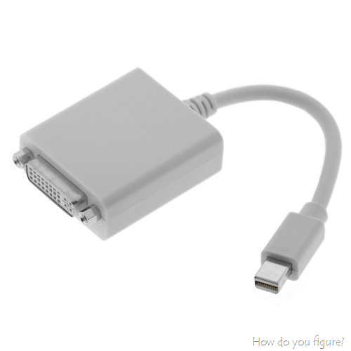 - Passive Adapter – These simply tells the DisplayPort that you are connecting a DVI device and won’t convert the signal. They are typically cheap to buy (around $10) and not usually marked with any special verbiage. Even some more expensive adapters found in stores (like Apple’s $30 miniDP to DVI adapter) are passive and WILL NOT WORK for this. Example of a passive adapter.