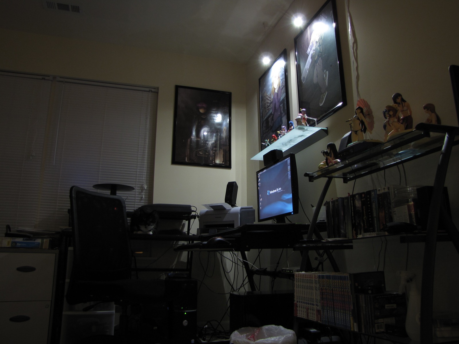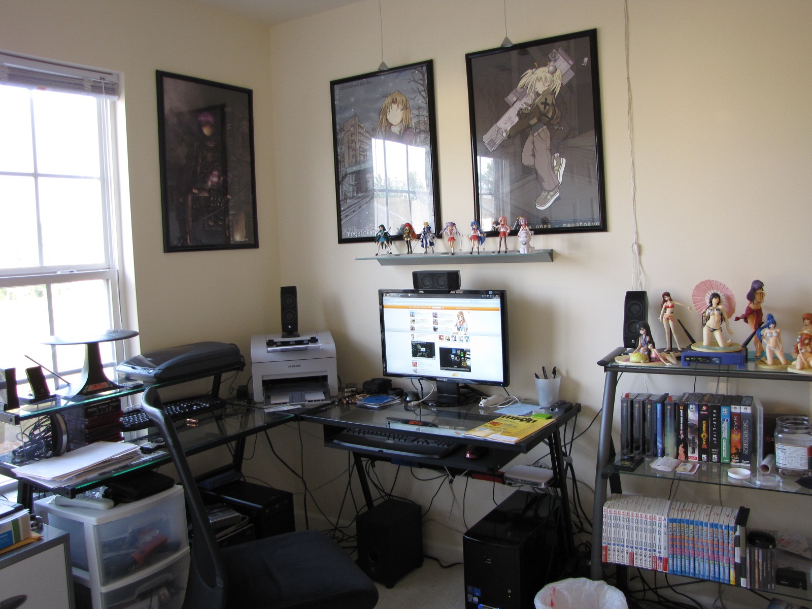 Due to the compliments I received from the last post and all the questions asking about other areas in my house, I was encouraged to clean up the computer area that is next to my otaku lounge. After sorting away some papers, tidying up the desk, and removing the junk from the floor, the area was finally photo worthy.