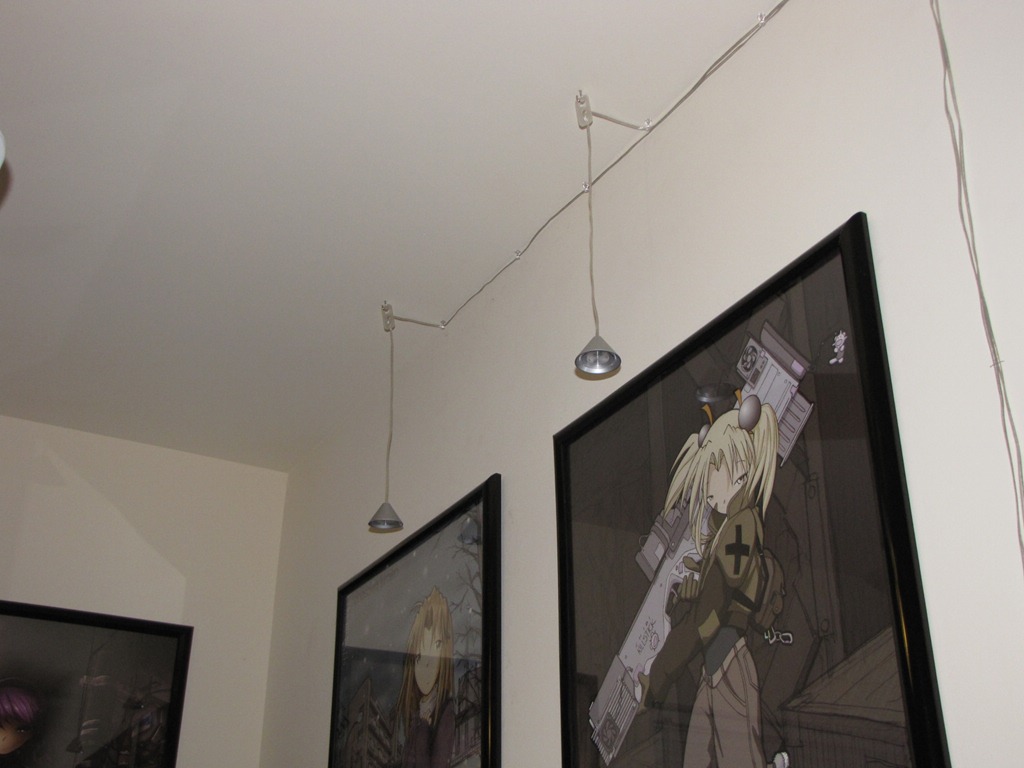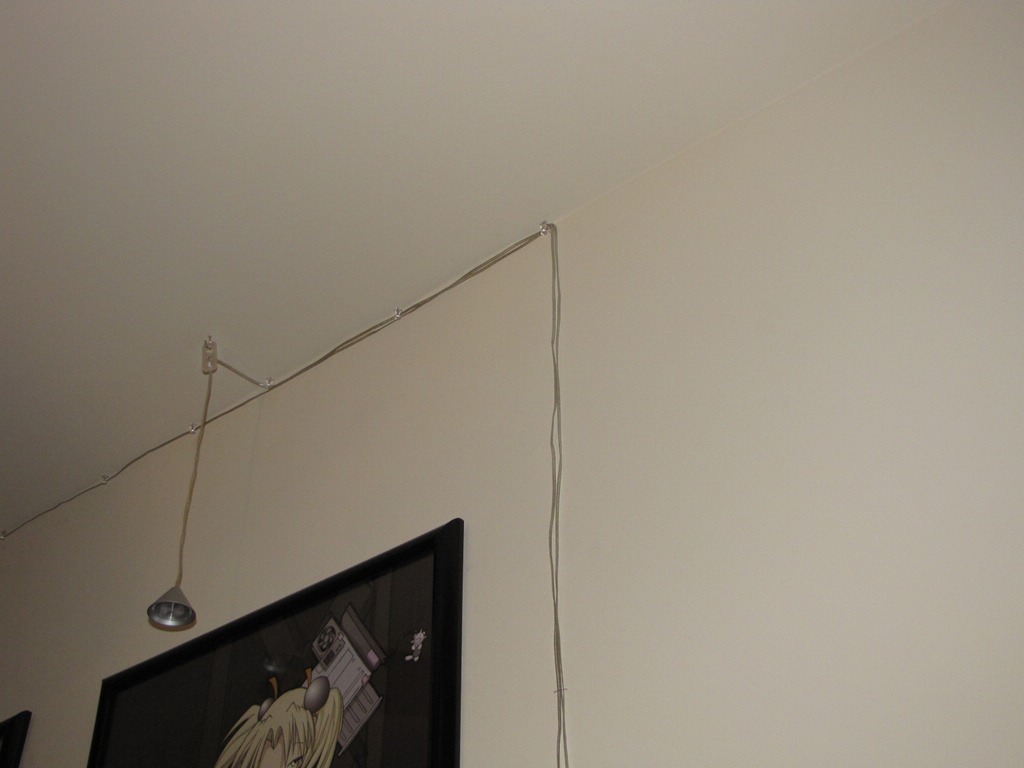 Getting them home, I set to work to putting them up. First for the pendants. They were actually fairly difficult to put up, since I had to measure from the ceiling and approximate the distance based on where my shelf was. Once they were hung, there was the problem with the wires. I got creative with some thumb tacks and managed to secure the wires in a way that didn’t look absolutely terrible… Once lit, I knew my efforts were worthwhile!